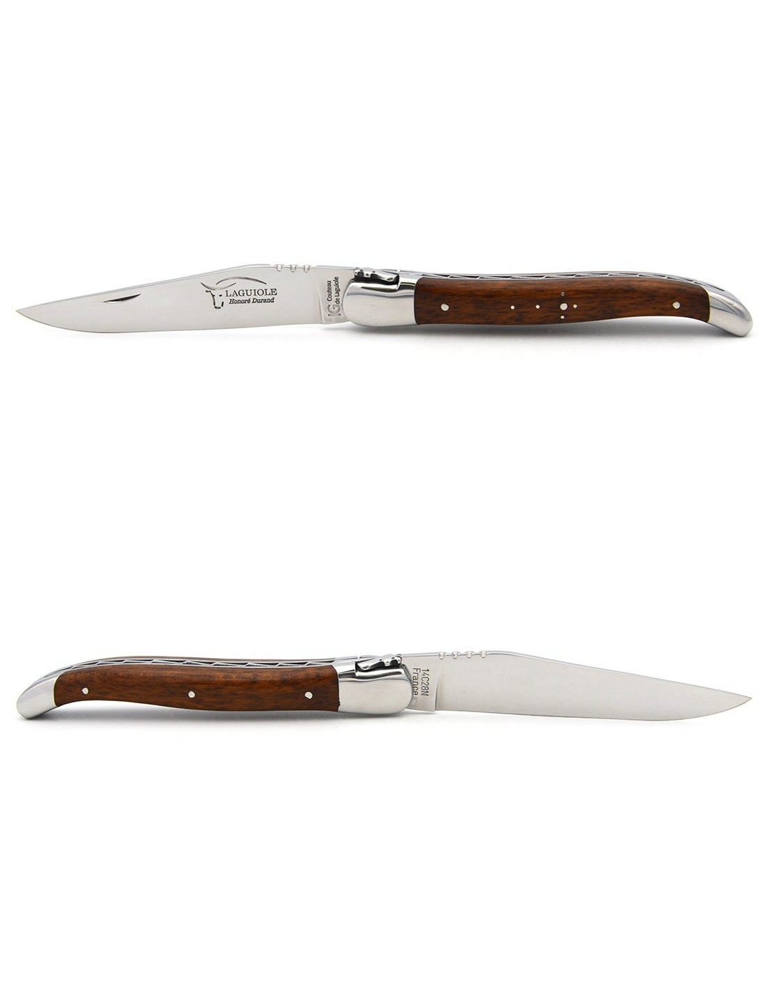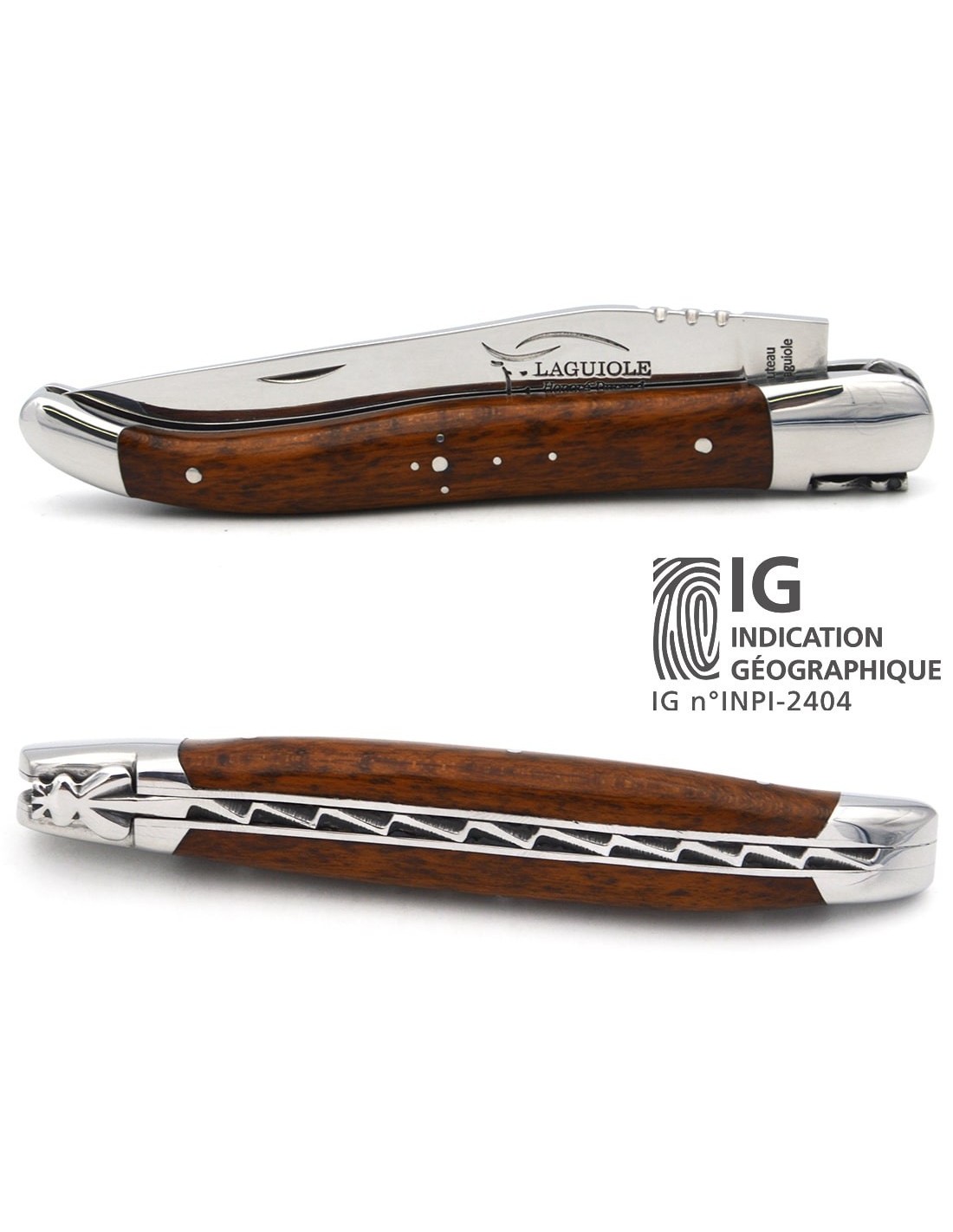 Couteau de Laguiole labellisé indication géographique en amourette, manche de 12 cm, lame seule, finition inox brillant